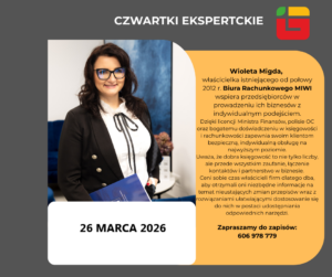 Skierniewicka Izba Gospodarcza serdecznie zaprasza na darmową konsultację z ekspertem z dziedziny rachunkowości panią Wioletą Migda, które odbędzie się w czwartek 26marca 2026r. Zapraszamy do zapisów.